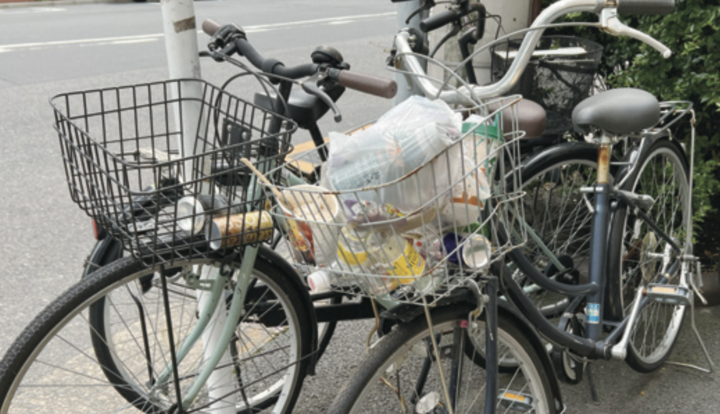 例えば、「放置自転車のカゴに集まるごみ」